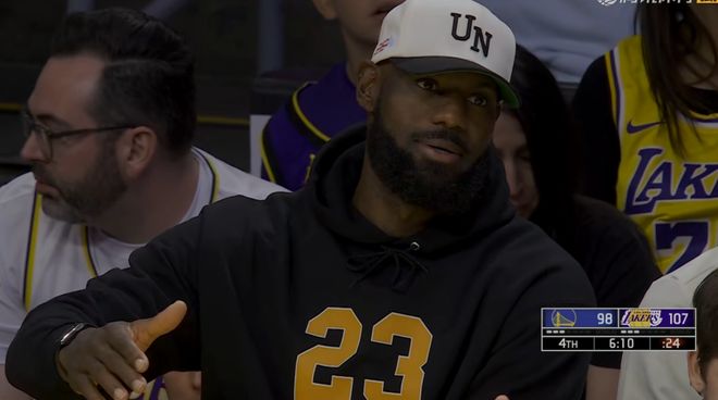 詹皇看球姿势很危险!跷二郎腿或让伤势恶化,队医+专家都失职了